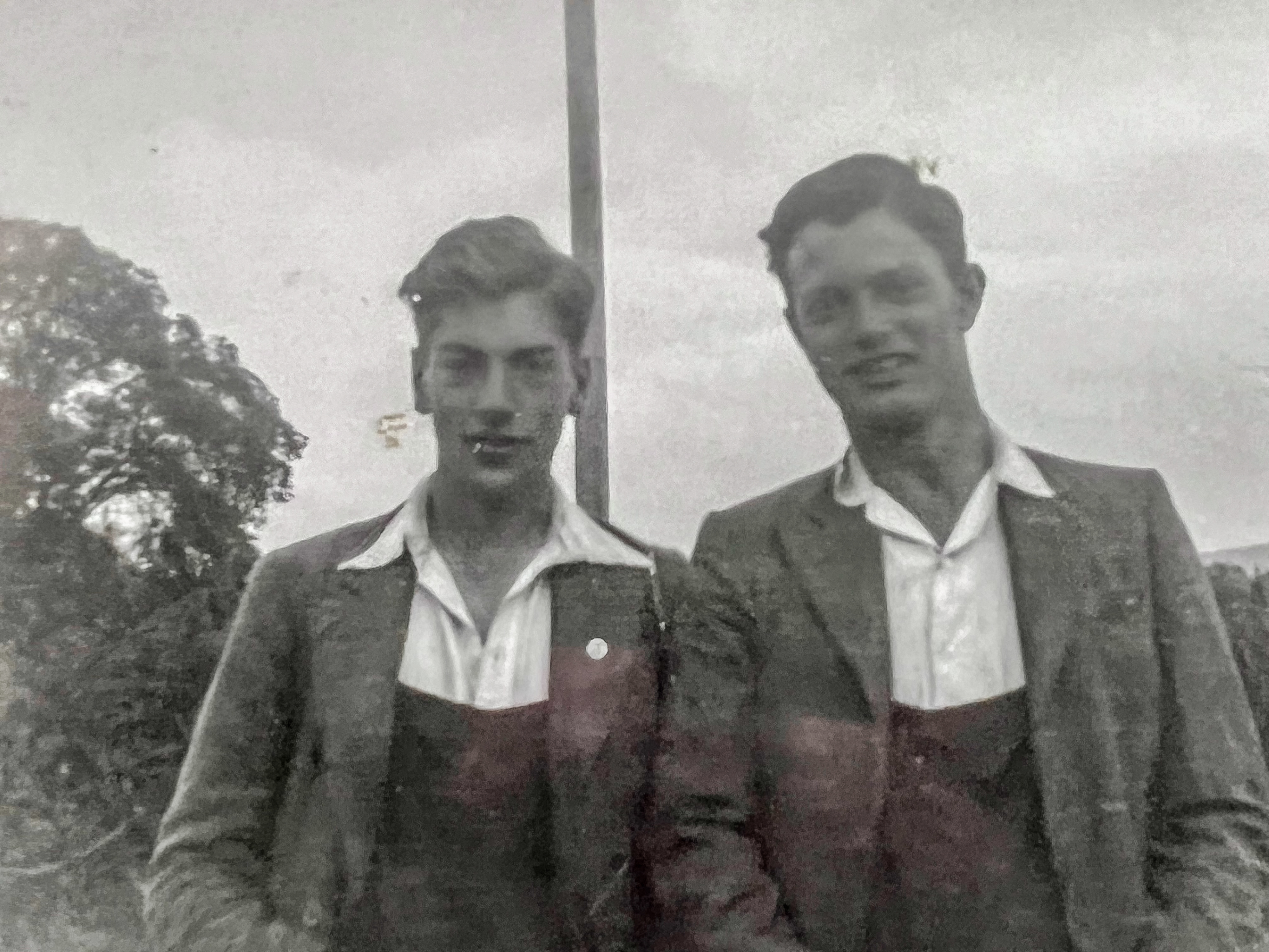 My Dad (right) with his friend Vincent James, both aged 16, harvesting near Brecon in the summer of 1940