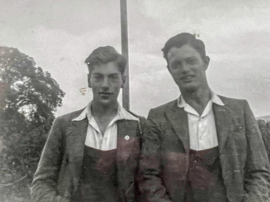 I never saw him drunk and I don’t recall him ever shouting at me or any of my siblings. He never hit us. I never saw him cry, and it would have greatly disturbed me if I had done; and I don’t remember seeing him obviously very angry either. But he was no stranger to emotion. The Second World War was the great shaping event of his early life. His best friend at school in Builth Wells was Vincent James, son of the local watch repairer (Dad’s parents owned the drapers’ shop), who disappeared whilst navigating a training flight in a Mosquito in 1944 and he occasionally spoke about how much he missed him even late in life.